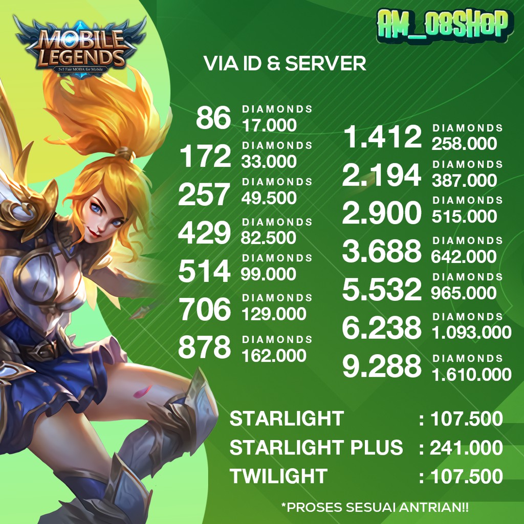 Harga di atas bisa sewaktu-waktu berubah, begitupun jumlah diamond ml . Free fire hack tool. if the above server does not work use below server. server 2: free fire hack proof. why you need to jual diamond mobile legend shopee use our free fire diamonds cheats hack tool: get unlimited coins and diamonds. generator is updated daily. without downloading. 100% safe (free of viruses / trojans). 24/7 online access. compatible with all android and ios. Mobile legends: bang bang, outstanding moba game on mobile. smash and outplay your enemies with teammates to achieve the final victory! your phone thirsts for battle! features: 1. classic moba maps, 5v5 battles real-time 5v5 battles against real opponents. fight over 3 lanes to take the enemy’s tower. 4 jungle areas. 18 defense towers. 2 wild.